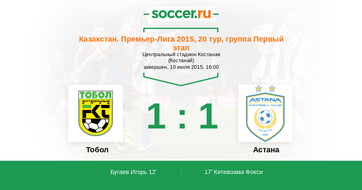 | Тобол | Астана | |