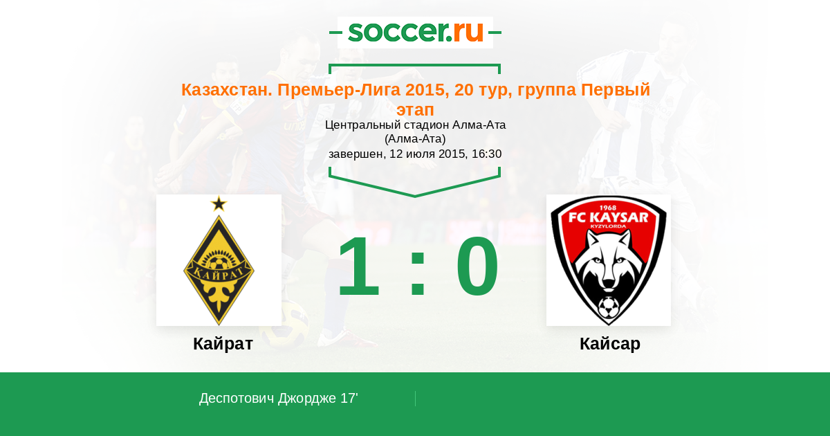 | Кайрат | 63:38 | 40:17 | 23:21 |