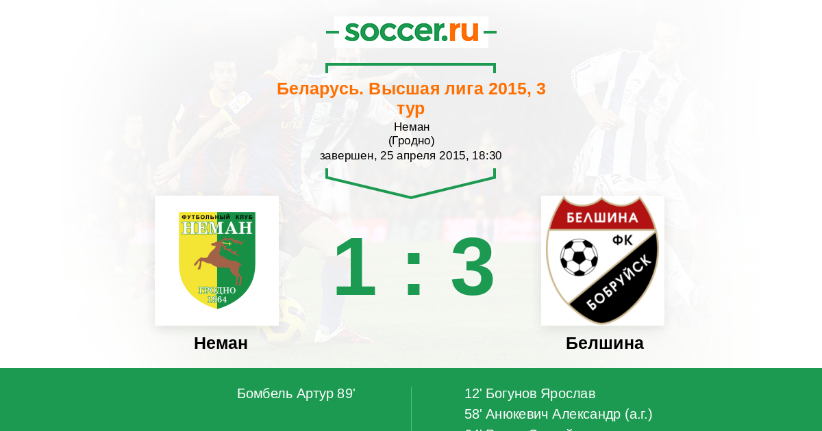 | Неман | 63:40 | 31:18 | 32:22 |