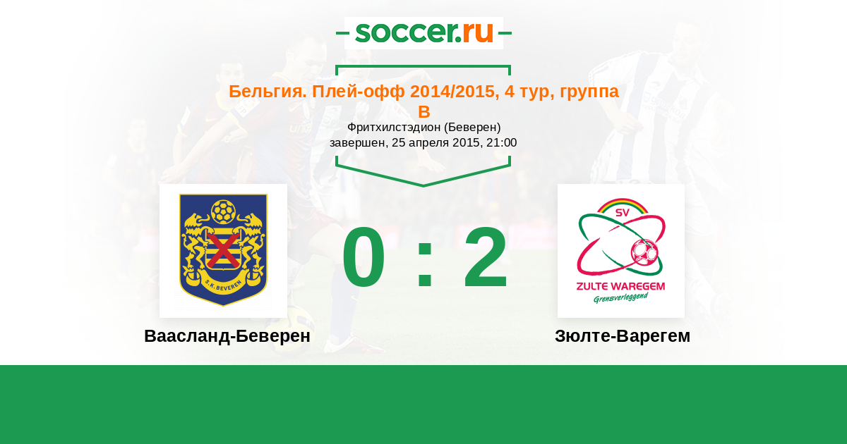 Ваасланд-Беверен 2:1 Зюлте-Варегем