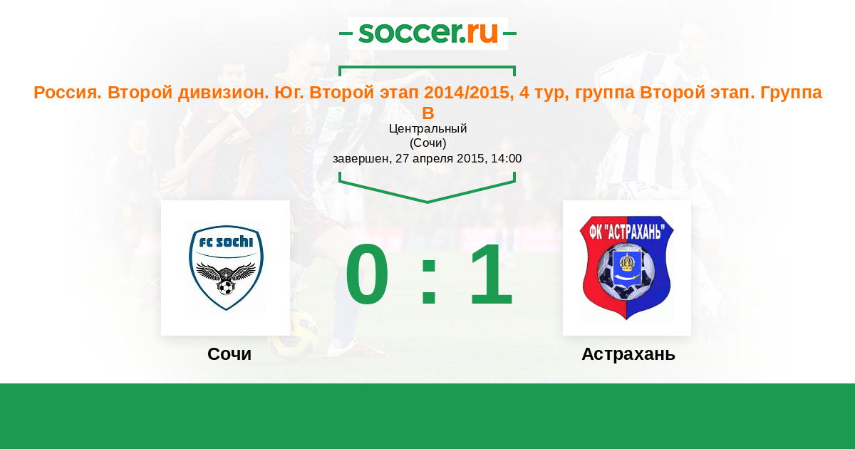 | Россия. Вторая лига. Группа 1 | 1 | 0 | 1 | 0 |