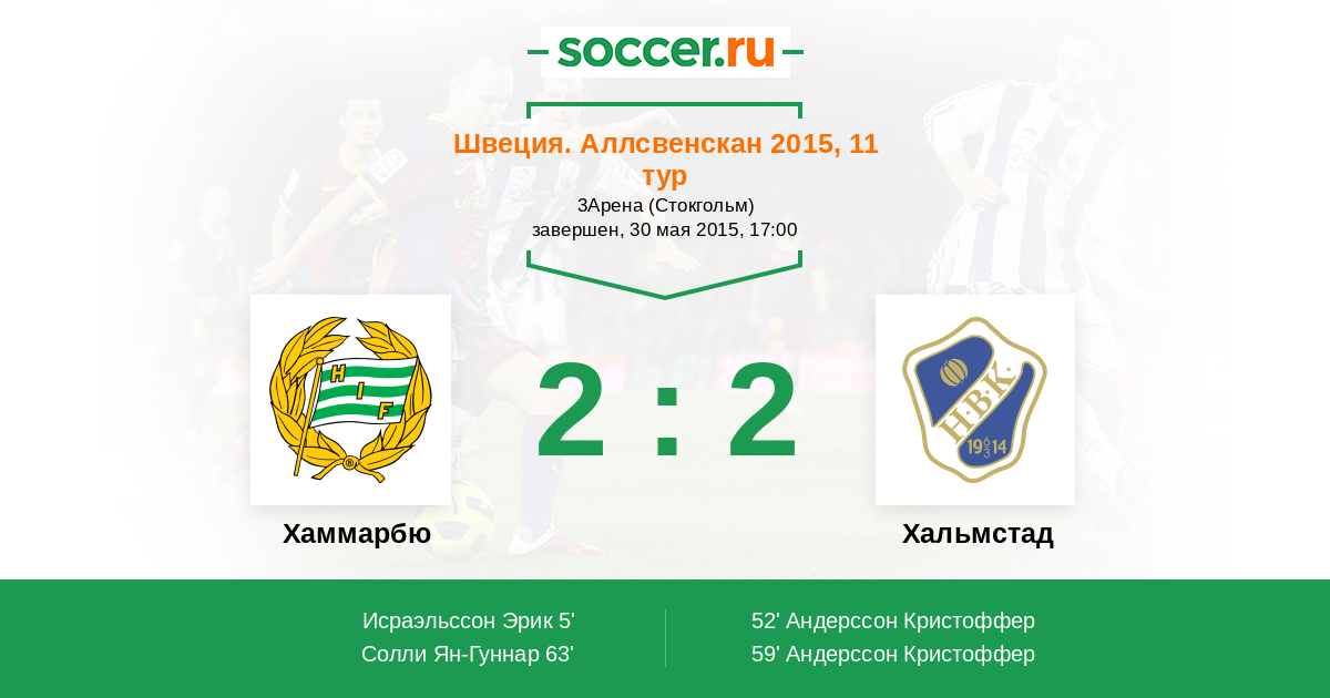 | Хальмстад | 55:46 | 32:20 | 23:26 |