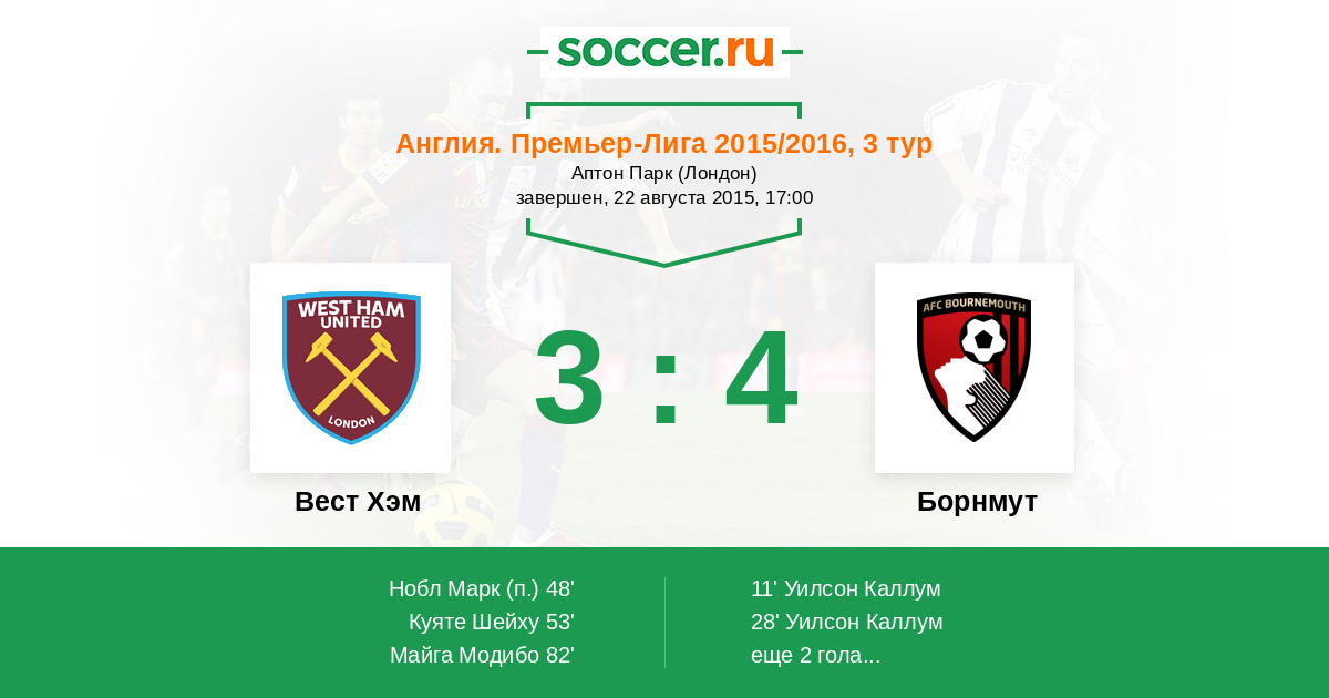 | Борнмут | 21:31 | 15:18 | 6:13 |