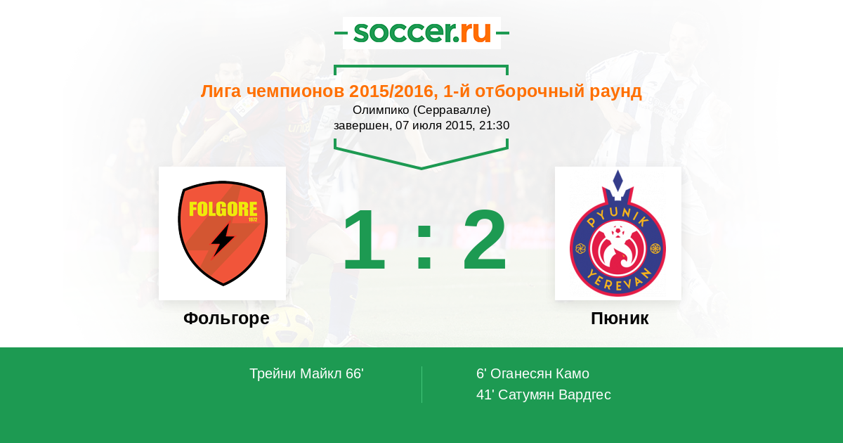 | Фольгоре | 1:2 | 0:0 | 1:2 |