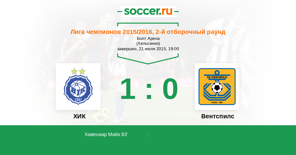 | ХИК | 3:1 | 0:0 | 3:1 |