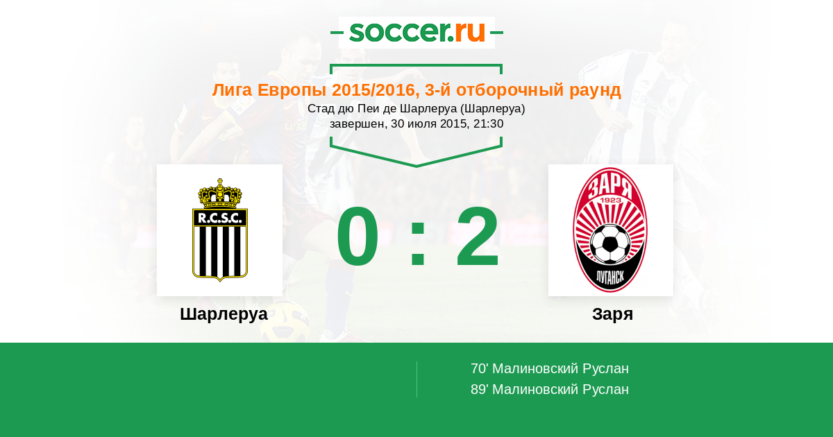 | Шарлеруа | Заря | |
