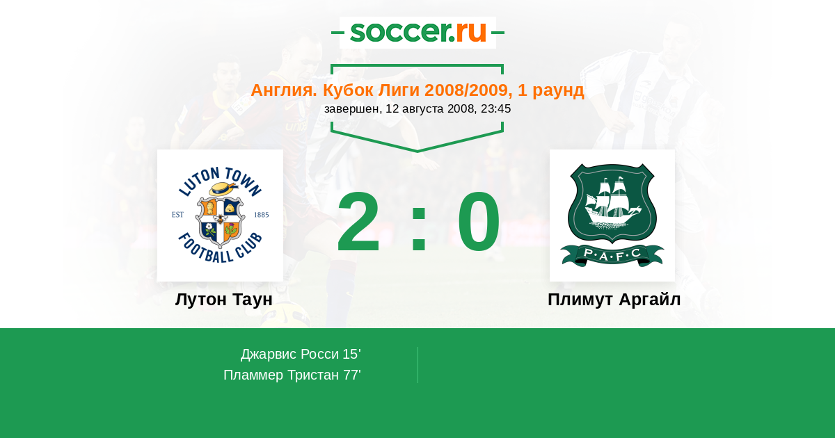 | Лутон Таун | Плимут Аргайл | |