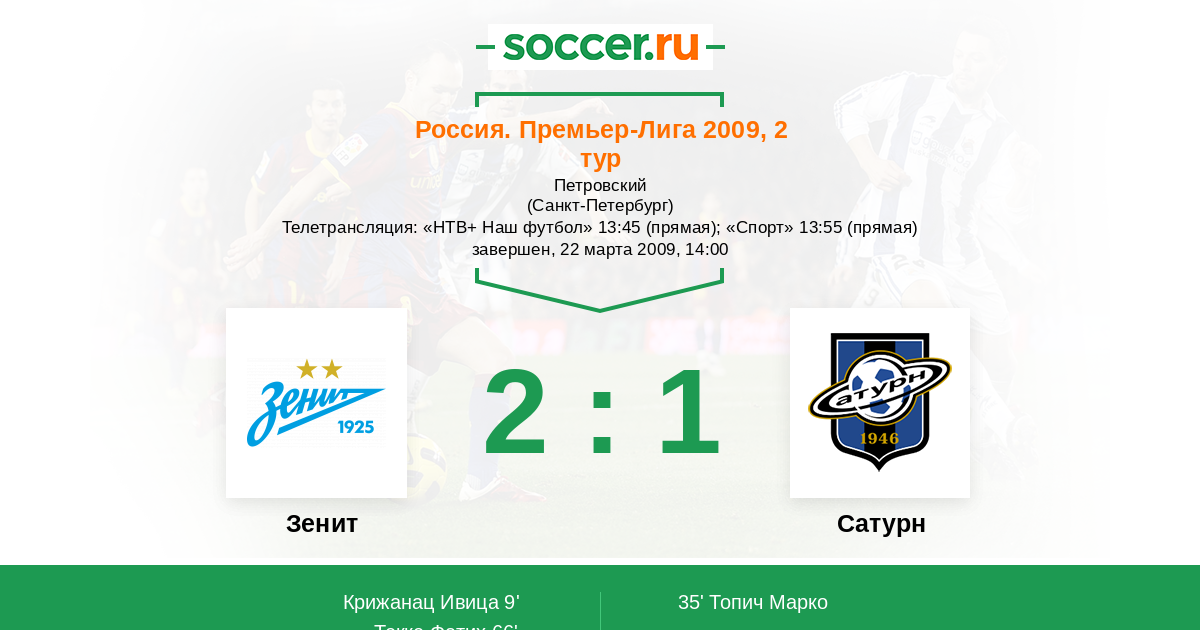 Санкт-Петербург, Петровский Телетрансляция: "НТВ+ Наш футбол" 13:45 (прямая); "Спорт" 13:55 (прямая)