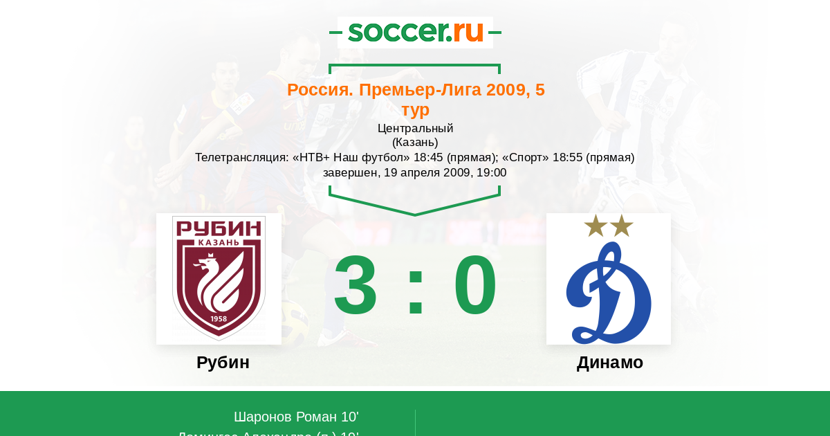 Казань, Центральный, зрителей: 15000 Телетрансляция: "НТВ+ Наш футбол" 18:45 (прямая); "Спорт" 18:55 (прямая)