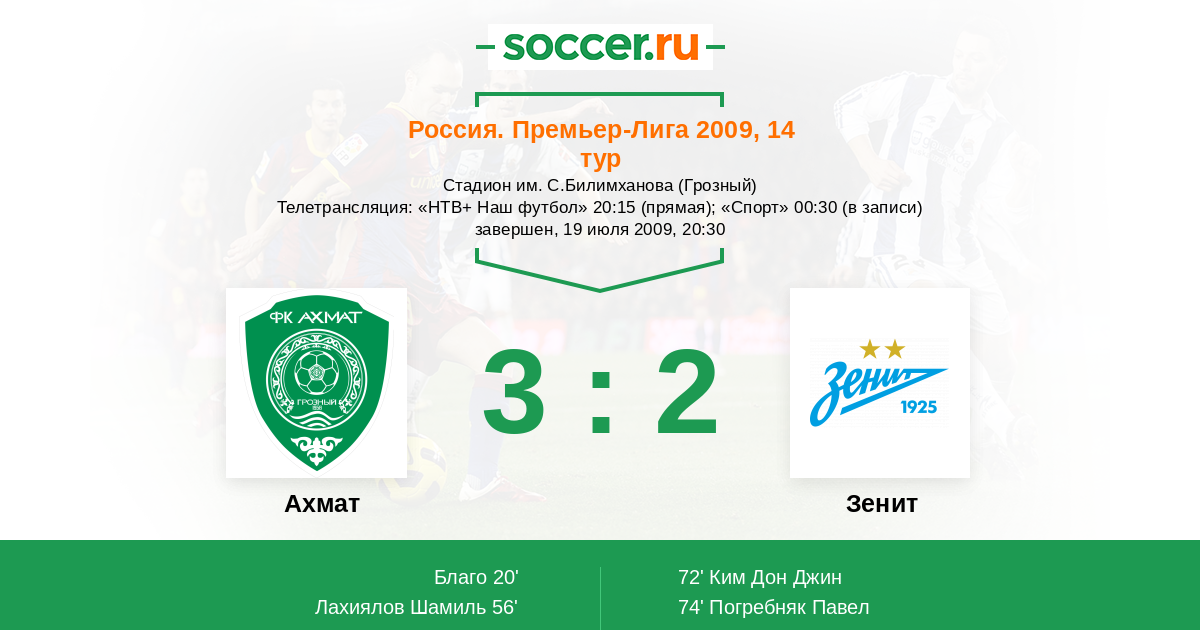 Грозный, Стадион им. С.Билимханова Телетрансляция: "НТВ+ Наш футбол" 20:15 (прямая); "Спорт" 00:30 (в записи)