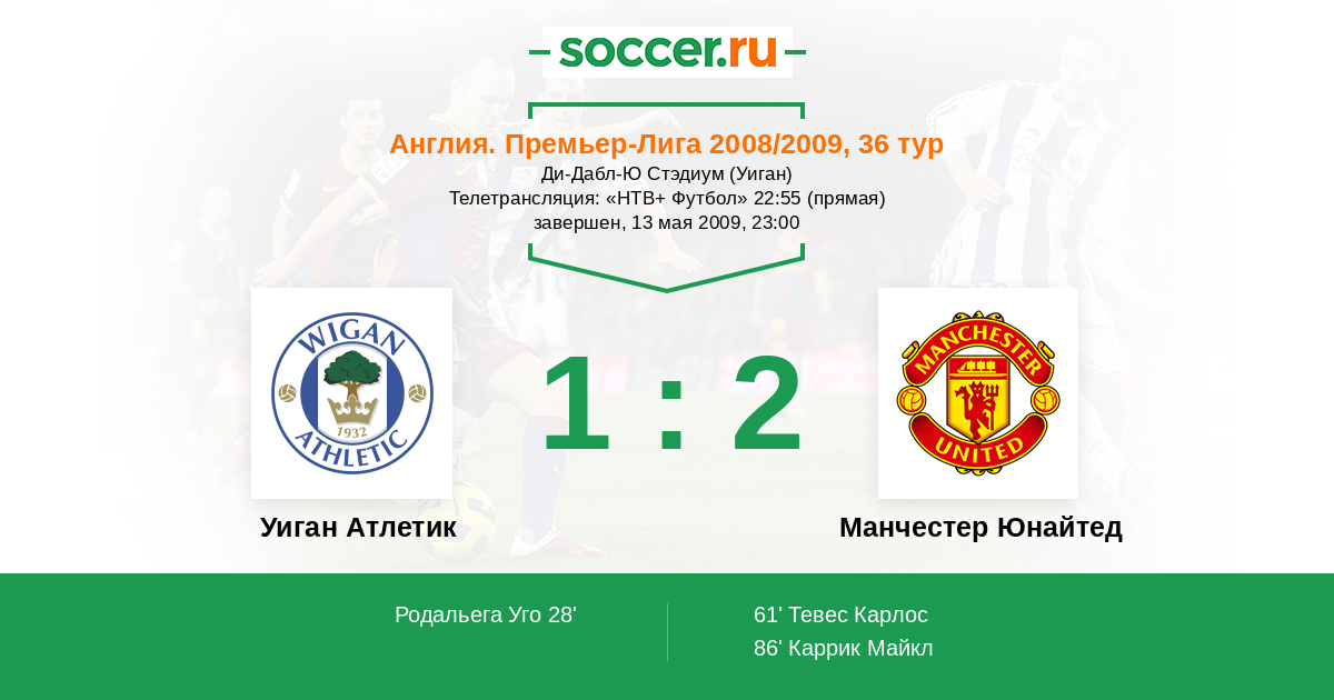 Уиган, Ди-Дабл-Ю Стэдиум Телетрансляция: "НТВ+ Футбол" 22:55 (прямая)