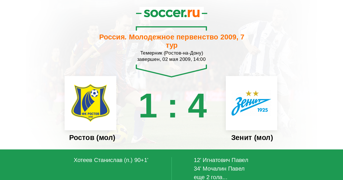 | Ростов (мол) | Зенит (мол) | |