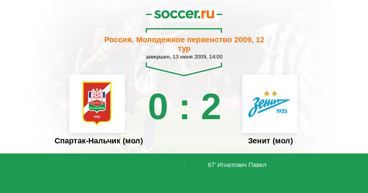 | Спартак-Нальчик (мол) | Зенит (мол) | |