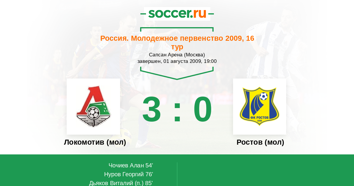 | Локомотив (мол) | Ростов (мол) | |