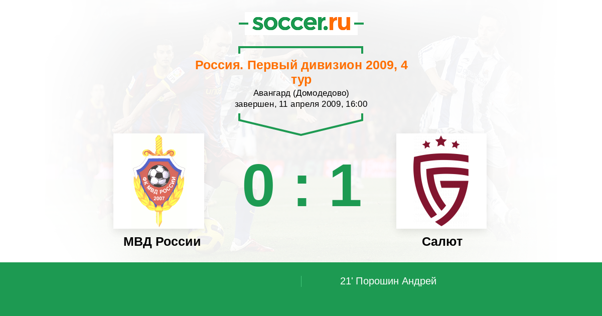 | Россия. Первая лига | 1 | 0 | 1 | 0 |