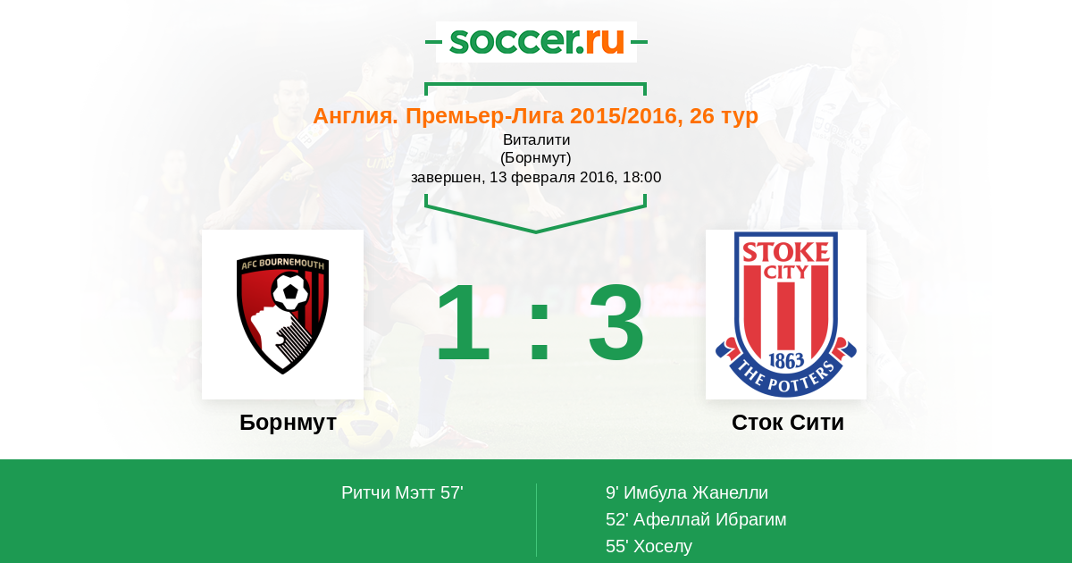 | Борнмут | Сток Сити | |