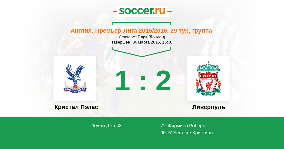 | Кристал Пэлас | Ливерпуль | |