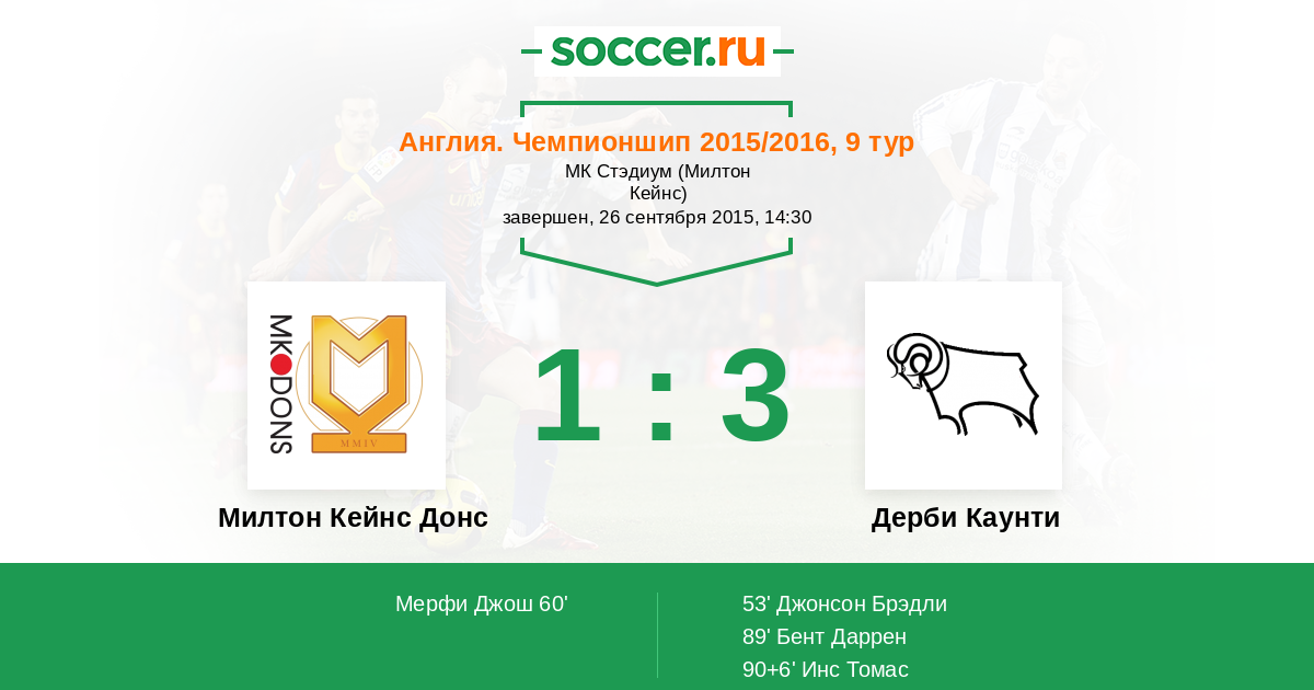 | Милтон Кейнс Донс | Дерби Каунти | |