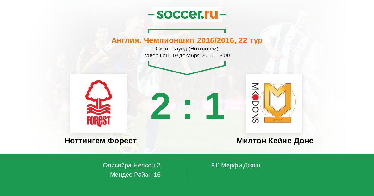 | Ноттингем Форест | Милтон Кейнс Донс | |