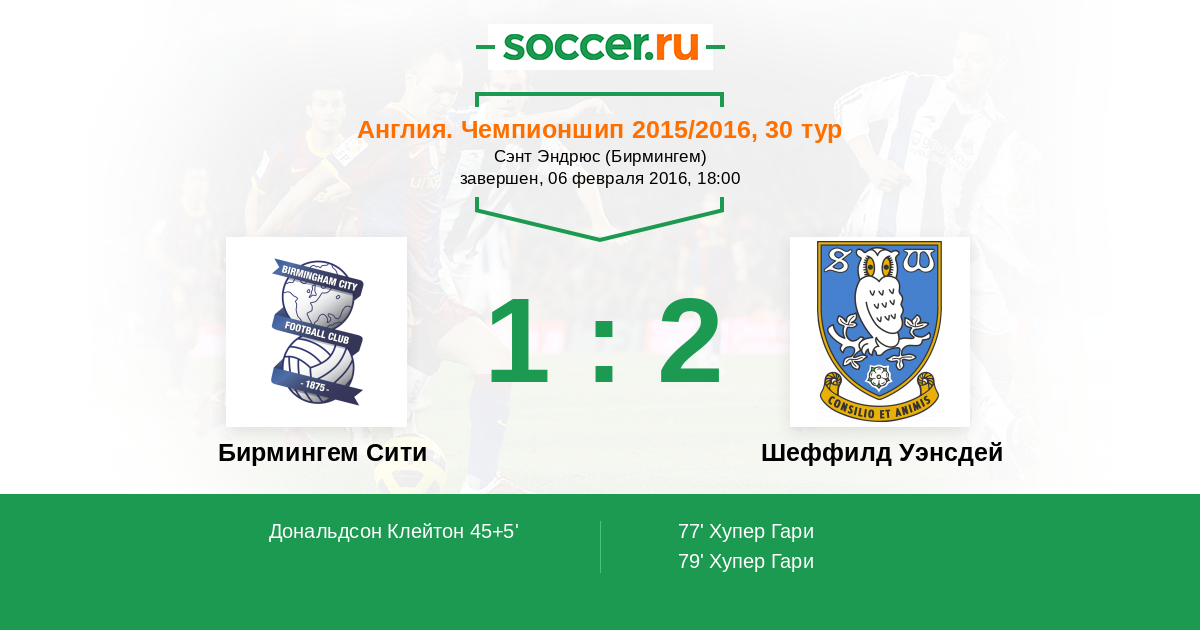 | Бирмингем Сити | Шеффилд Уэнсдей | |