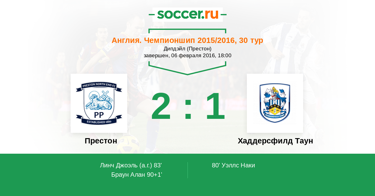 | Престон | Хаддерсфилд Таун | |