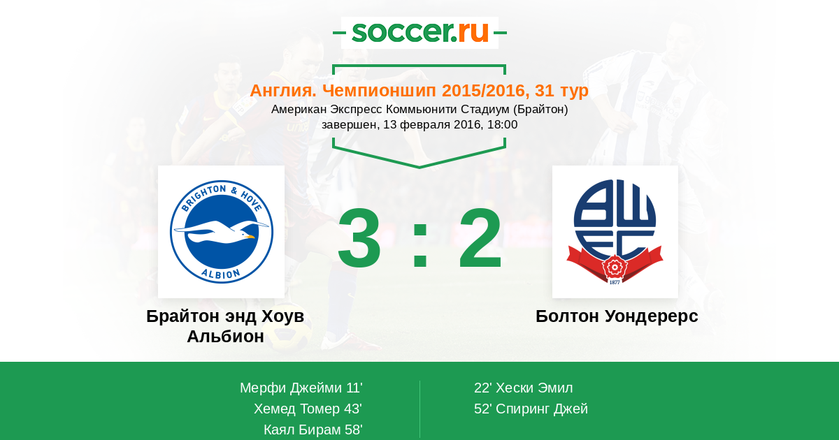 | Брайтон энд Хоув Альбион | Болтон Уондерерс | |