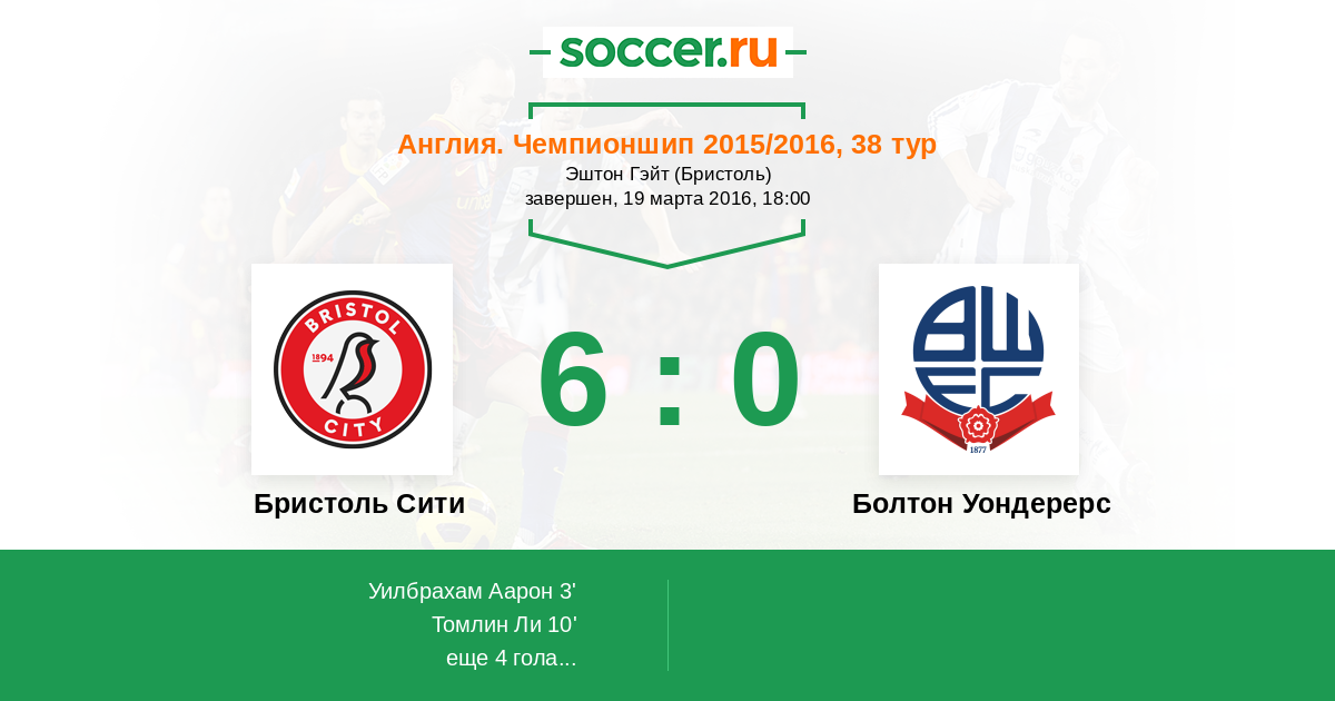 | Бристоль Сити | 38:27 | 21:10 | 17:17 |