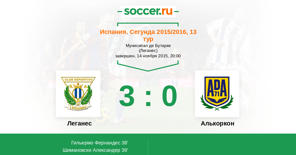 | Алькоркон | 38:36 | 18:17 | 20:19 |
