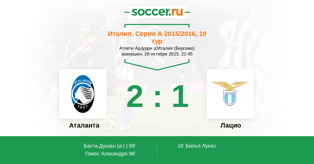 | Аталанта | 62:81 | 36:38 | 26:43 |