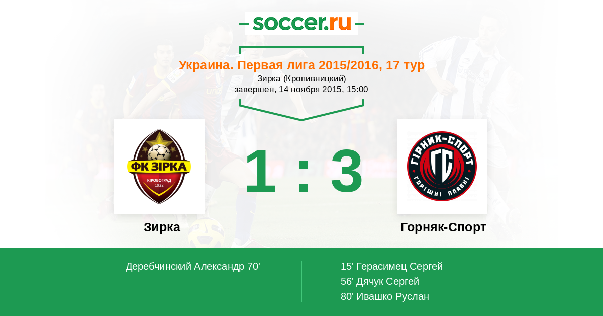 | Зирка | Горняк-Спорт | |