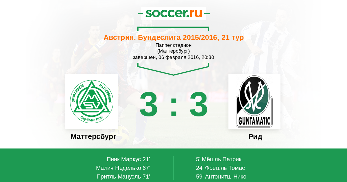 | Маттерсбург | 36:36 | 25:15 | 11:21 |