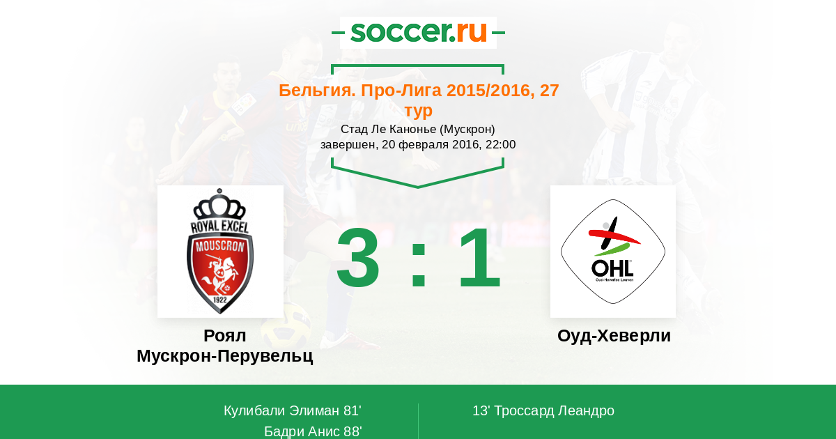 | Роял Мускрон-Перувельц | Оуд-Хеверли | |