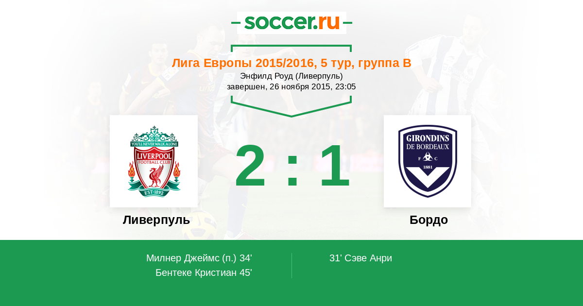 | Ливерпуль | 5:1 | 3:0 | 2:1 |