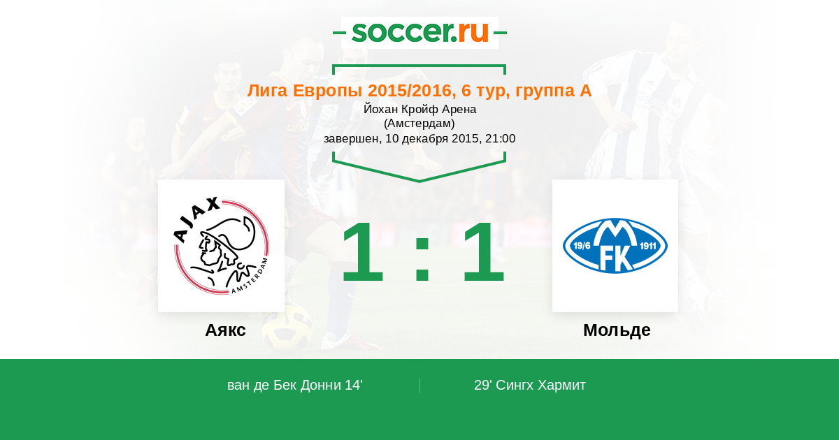 | Аякс | 1:1 | 0:0 | 1:1 |