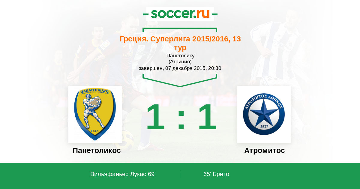 | Атромитос | 48:34 | 25:16 | 23:18 |