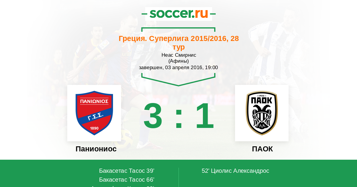 | Паниониос | 38:75 | 23:23 | 15:52 |