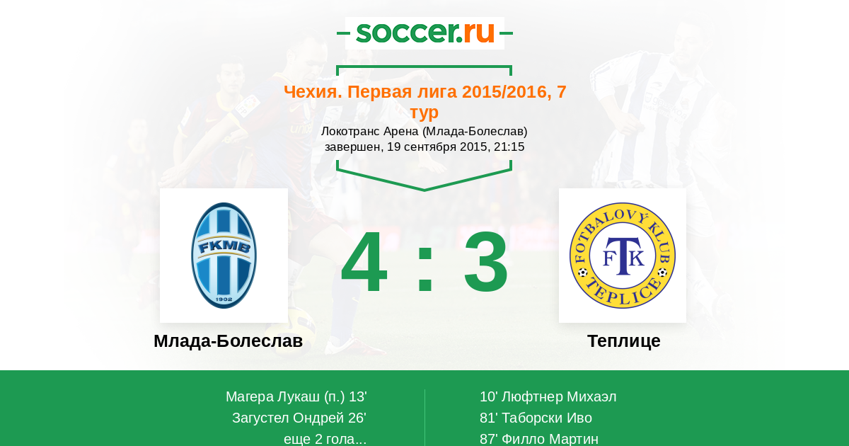 | Млада-Болеслав | 68:53 | 29:24 | 39:29 |