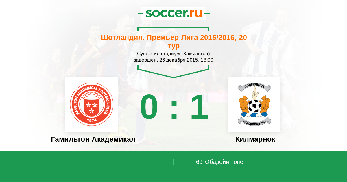 | Гамильтон Академикал | 33:46 | 17:18 | 16:28 |