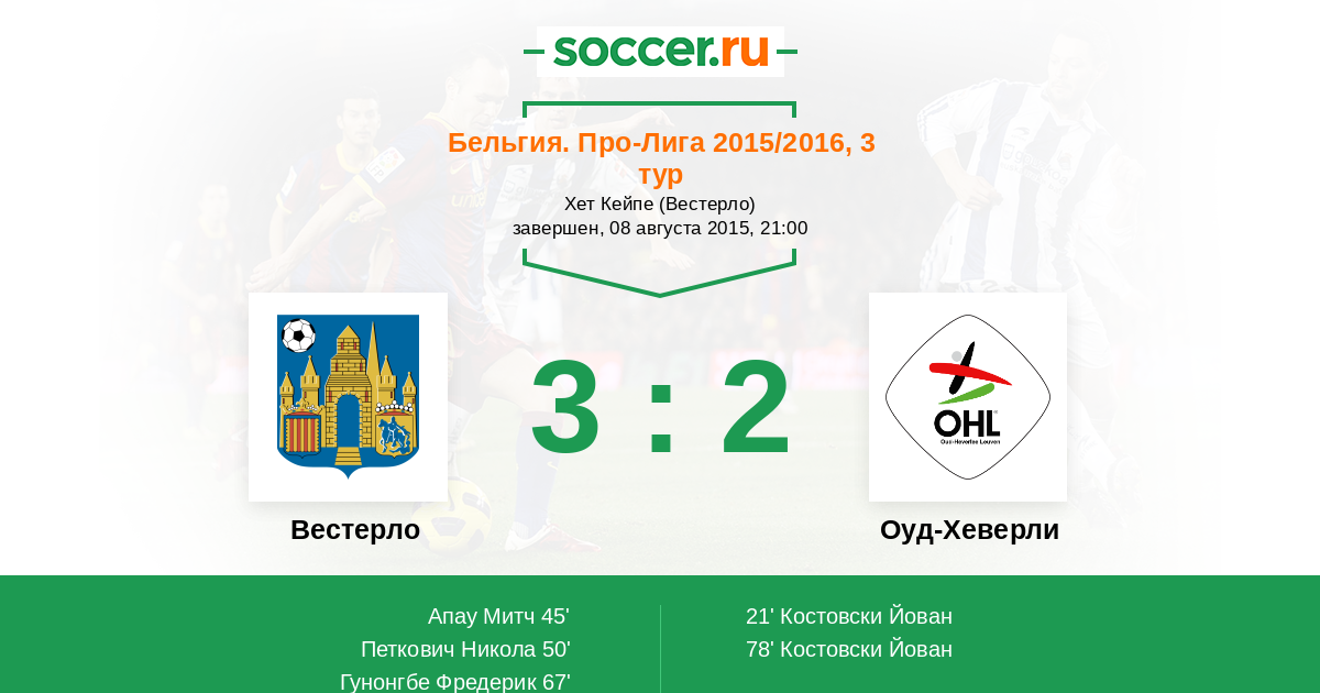 | Вестерло | 34:40 | 15:20 | 19:20 |