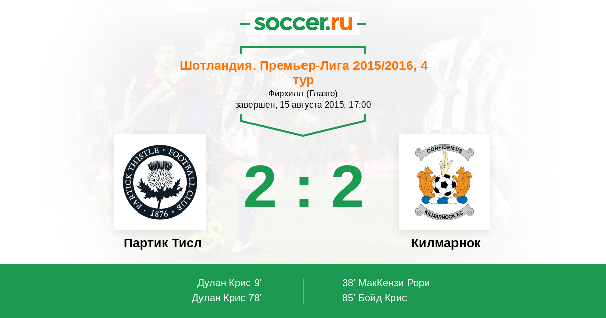 | Партик Тисл | Килмарнок | |