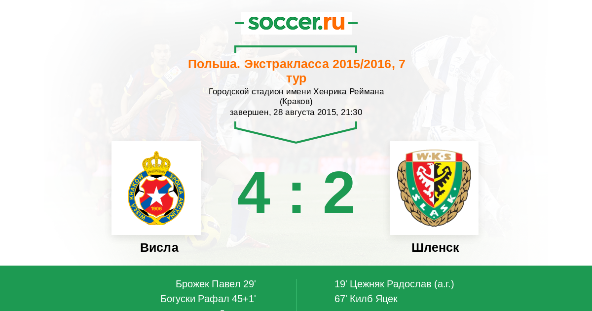 | Висла | 52:52 | 29:28 | 23:24 |