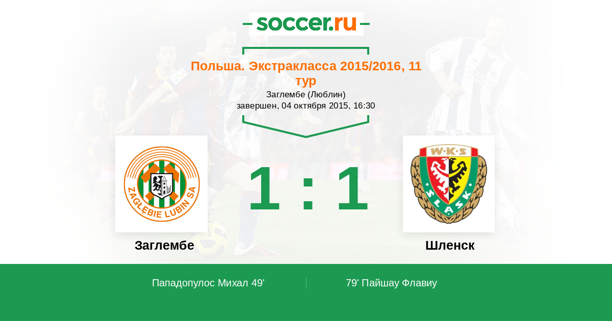 | Шленск | 49:54 | 26:23 | 23:31 |