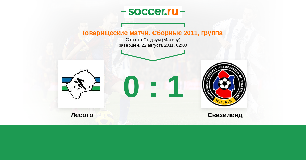 | Свазиленд | 5:4 | 0:0 | 5:4 |