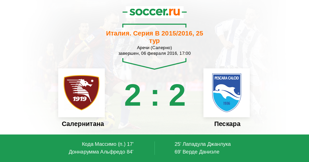 | Салернитана | Пескара | |