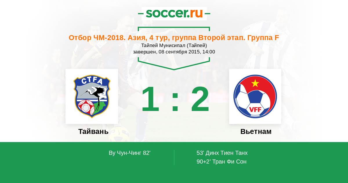 | Тайвань | 2:5 | 0:0 | 2:5 |