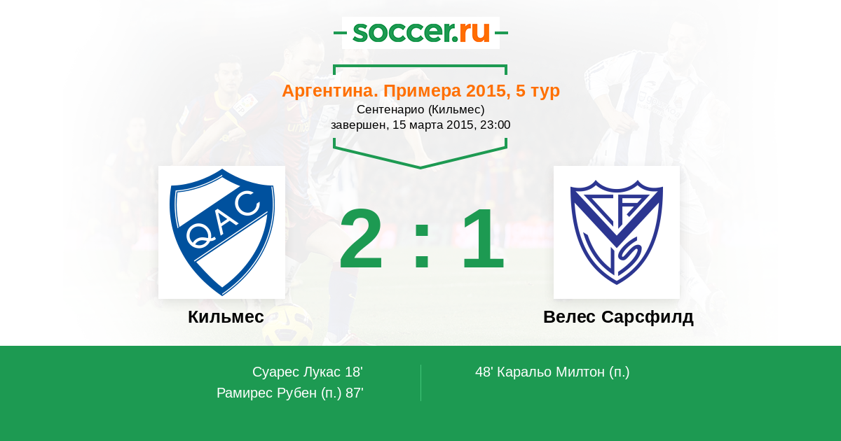 | Кильмес | 2:1 | 0:0 | 2:1 |