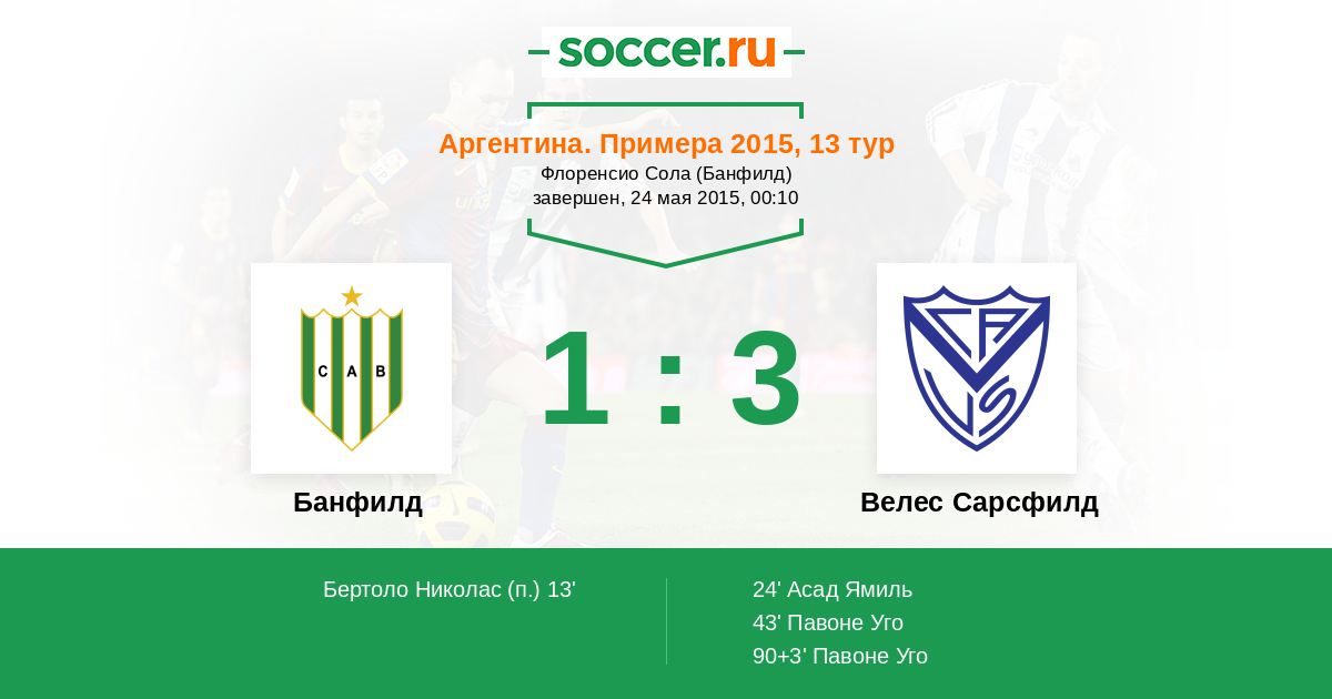 | Велес Сарсфилд | 51:37 | 30:15 | 21:22 |