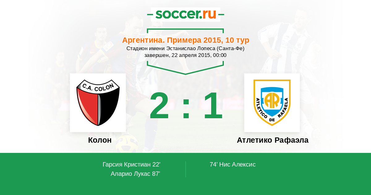 | Колон | Атлетико Рафаэла | |