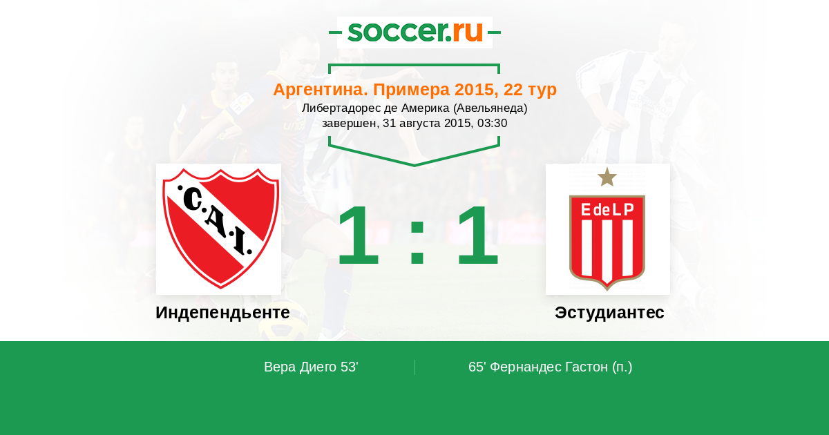 | Индепендьенте | 44:53 | 22:27 | 22:26 |