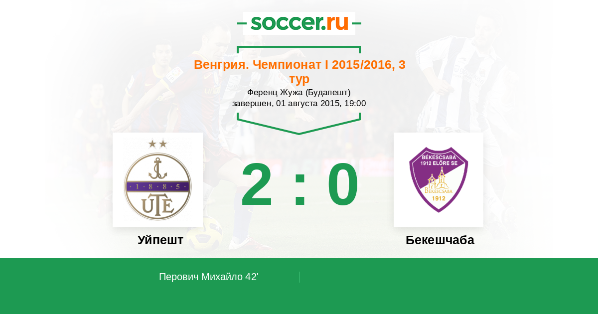 | Уйпешт | 3:2 | 0:0 | 3:2 |